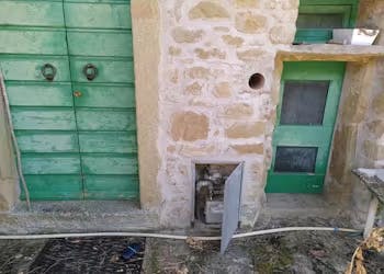 Der Heizungsraum befindet sich rechts neben dem Haupteingang (kleine Türe).